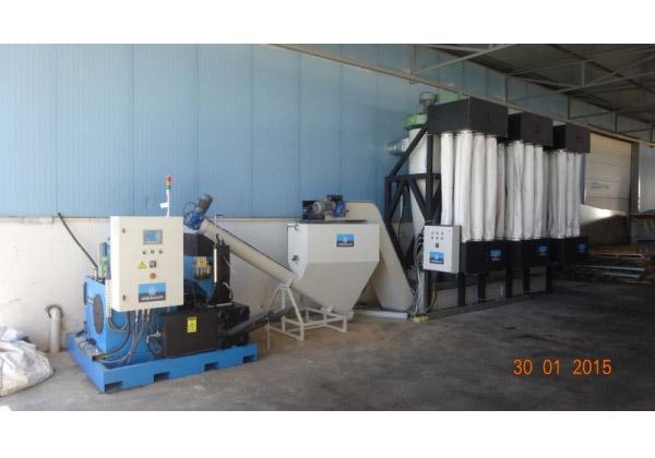 Komple bir talaş briketleme tesisinde, briket presinin öncesinde gerekli olursa talaş kırıcı ve/veya yağ ayırma için santrifuj kullanılabilir. Bu şekilde komple bir tesiste talaşa brikete çevrilerek değer katılırken, yağlar da ayrıştırılıp, filtrelenerek fabrikada tekrar kullanılır. Talaşı stoklamak veya tankta bekletmek içindeki yağ miktarını % 8’e, briketlemek %3’e santrifuj ve briketleme % 1’e düşürmektedir.
