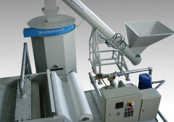 - Yıkanan talaşlar santrafüje taşınır.Burada talaş üzerinde kalan sıvı merkez kaç kuvvetiyle sıkılarak toplama haznesine gönderilir.Talaş ise pnömatik olarak siloya yada konveyöre taşınır.